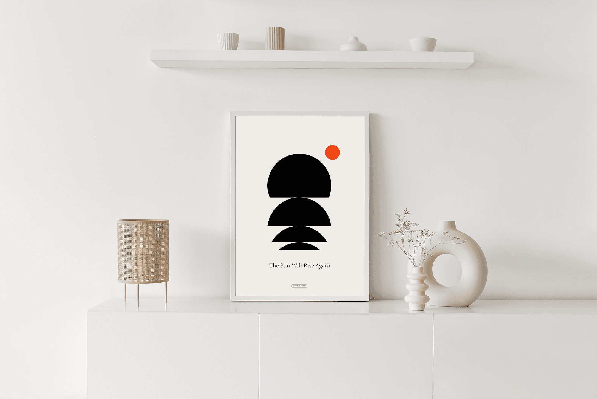 The visual tells about the process of sunrise, adapted from Bauhaus Design Style